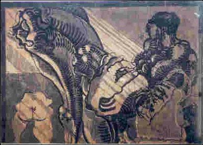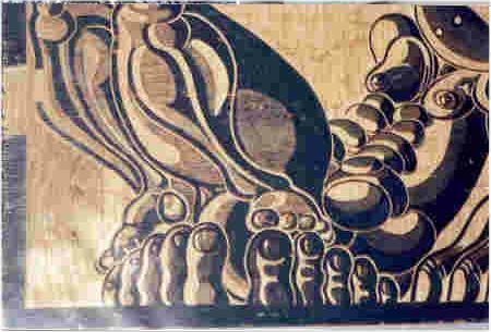 "Mujer recostada". Encre de chine sur bois