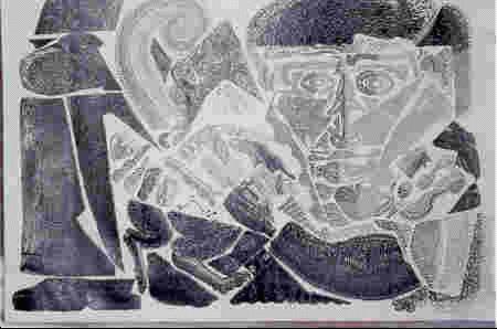 "Hombre recostado". Encre de chine sur bois